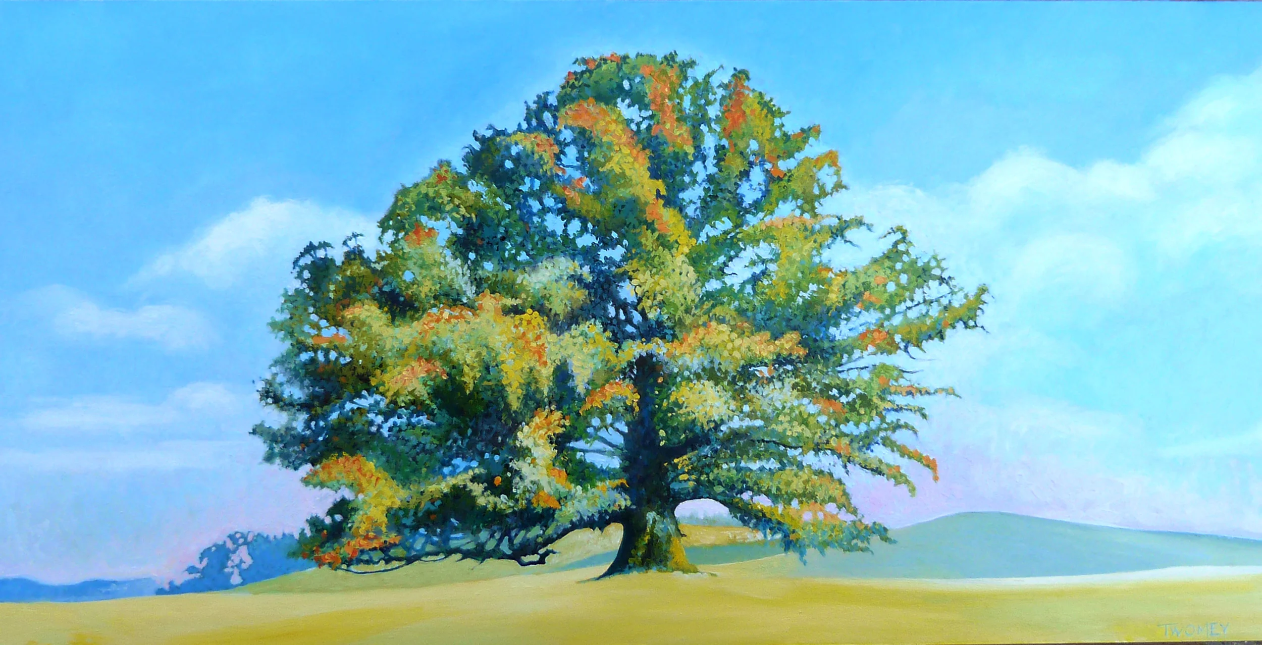 An ancient white oak tree, hundreds of years old, on the way from Thomas Jefferson's Monticello to James Madison's Montpelier. It is a rare oak with a huge tulip-shaped trunk. I was lucky enough to paint it before it was fenced off.