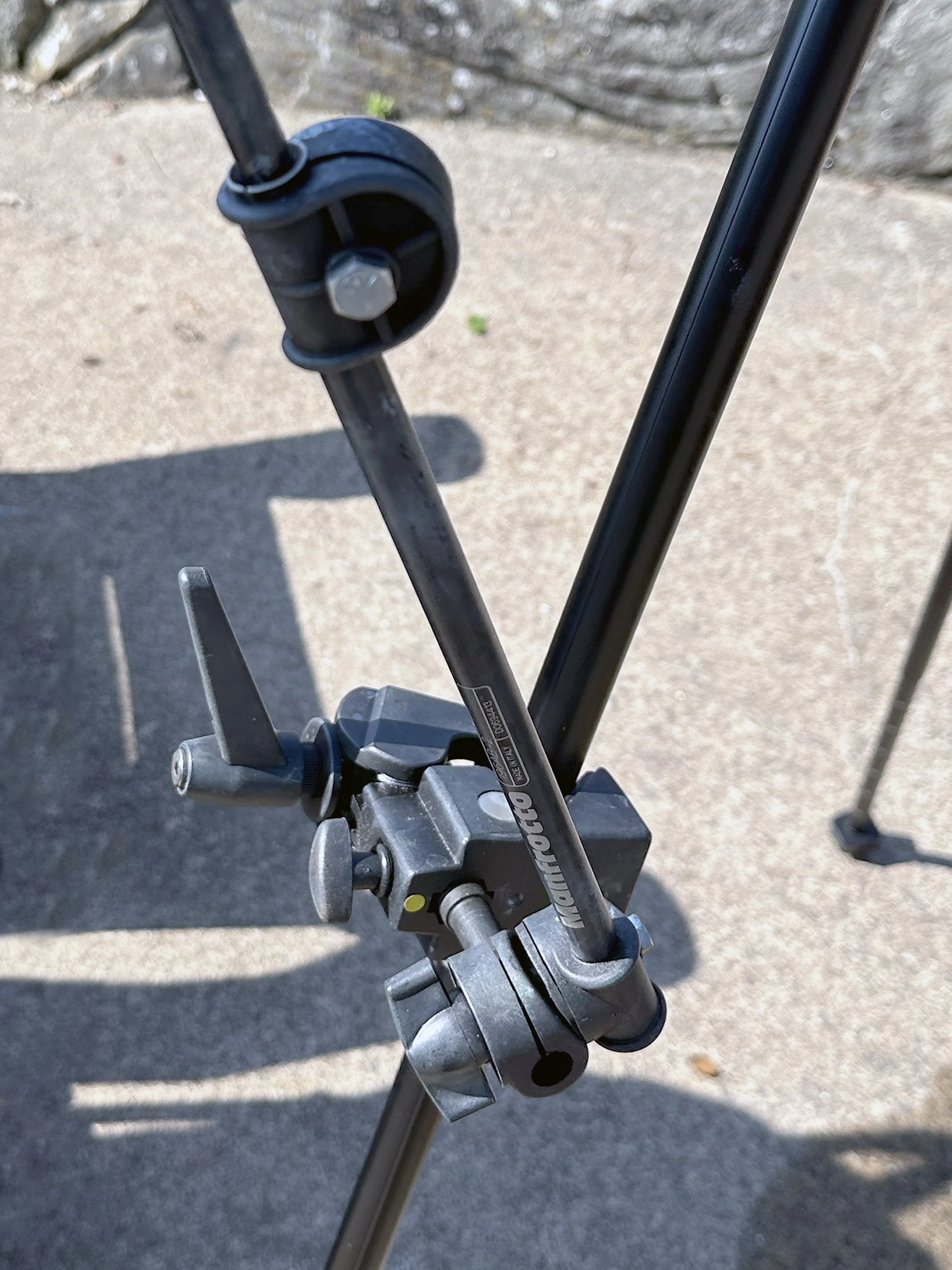 The umbrella attachment is as heavy as it looks. It easily clamped on to the Inspire’s front leg and held the umbrella without an issue. That’s when the excitement began, however! I suddenly noticed the painting falling away from me. I discovered a first-time user’s error - I hadn’t completely locked in the Inspire’s back leg-locking mechanism, which is just a very simple twist to make at the bottom of each leg. Fortunately I caught the easel and painting in time, tightened everything up as it should be, and continued. I’ve concluded that the additional weight of the umbrella holder revealed my lax leg locking skills! My advice is to take extra care to lock in the legs at the start of every session to guarantee disaster aversion.